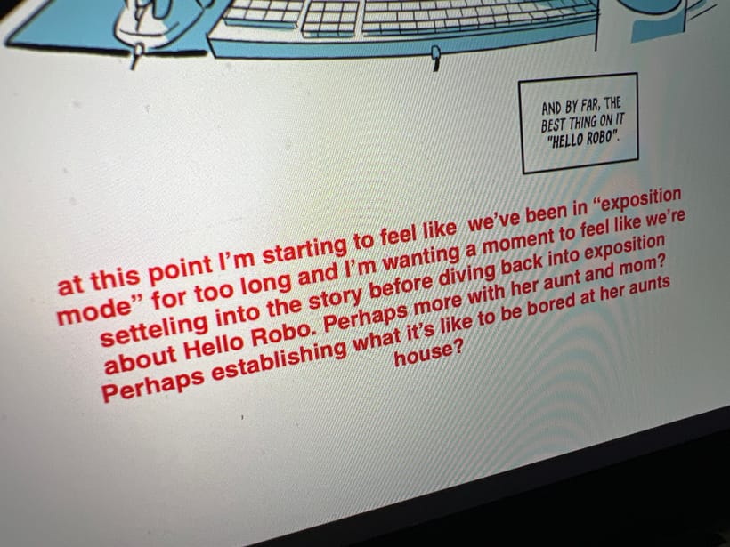 Here are some examples of what I'm talking about, from Hello Robo, my current graphic novel project. If you're curious what this book is about, I've shared the pitch document I use when pitching to publishers with my Patreon supporters.